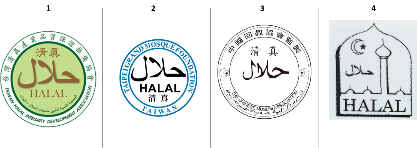 halal logo from either one of three different halal bodies from Taiwan. As for